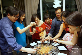 Our big uncle (大舅) showcased his creative flair with this homemade yusheng. :D The prettiest loi hei ever. :D